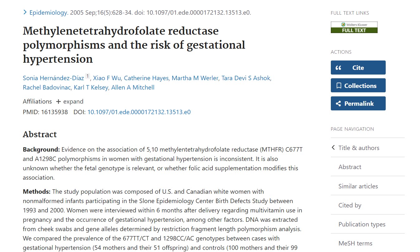 Ген MTHFR в положении C677T – ключевом к метаболизму фолатов – значительно увеличивает