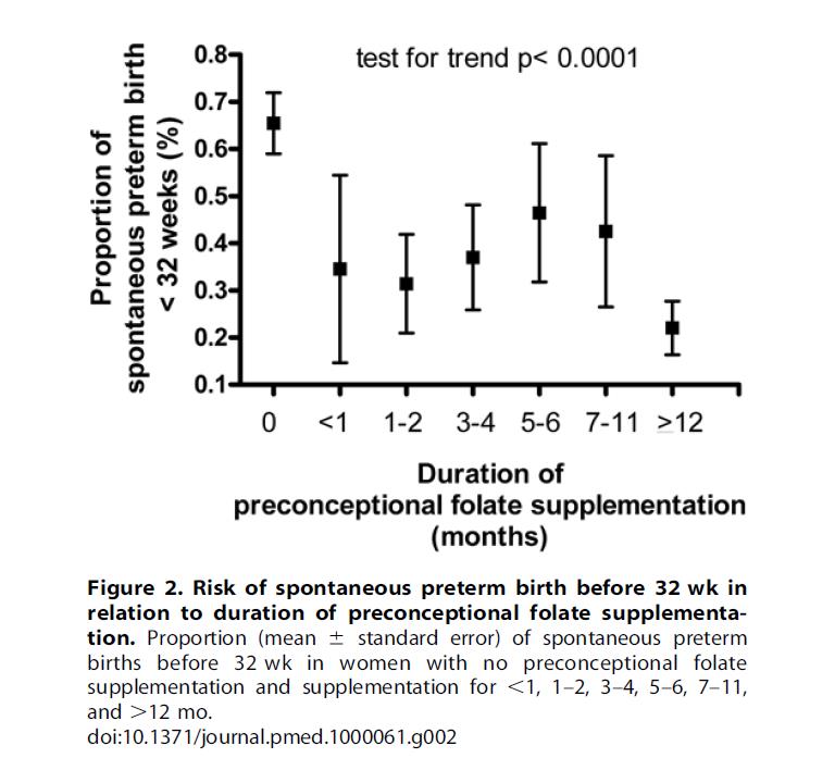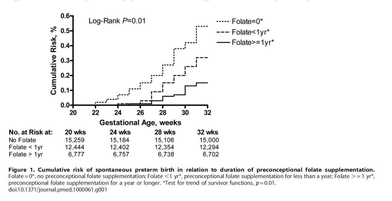 [1] Буковски Р. и др. предвзятый Прием фолиевой кислоты и риск спонтанных преждевременных родов: когорта исследование. ПЛОС Мед. Май 2009 г.;6(5):e1000061.