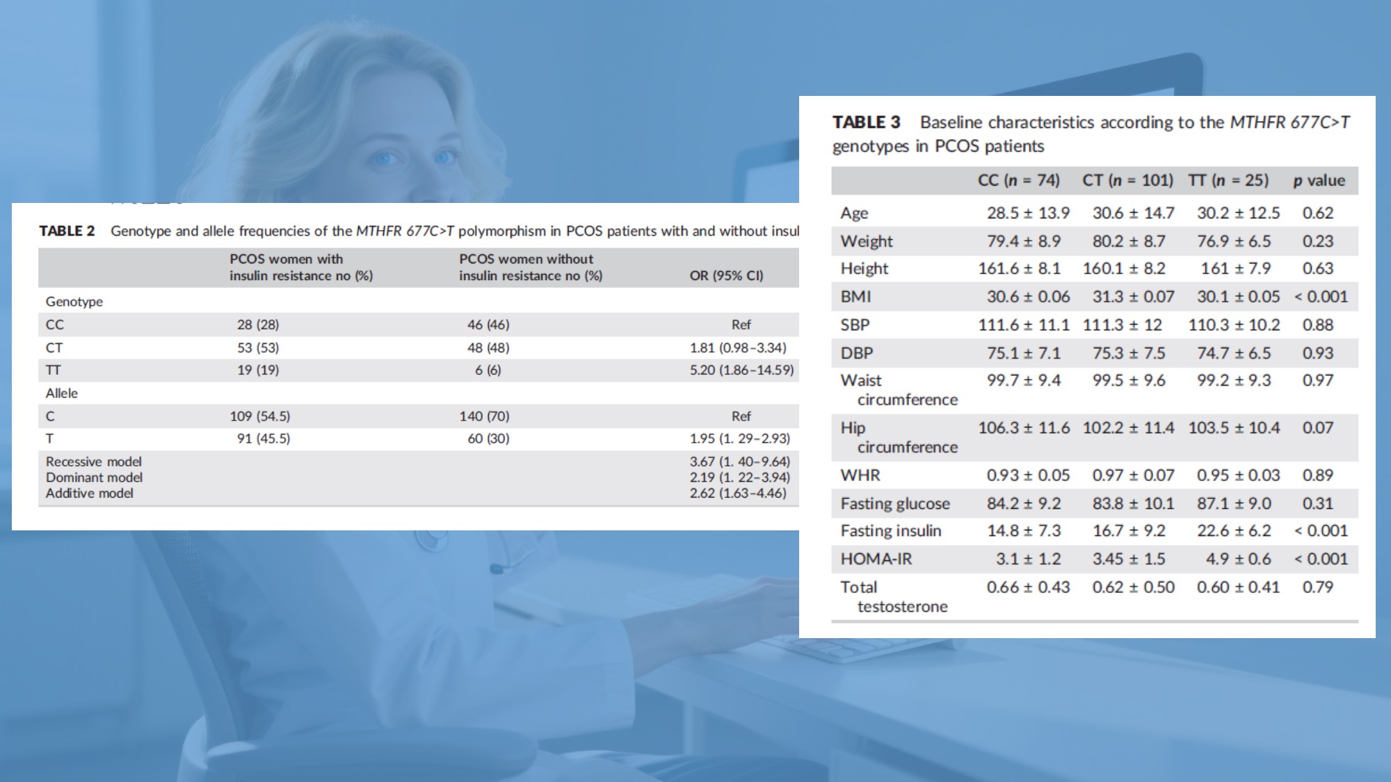 Авторы ясно заявили, что у египетских женщин с СПКЯ *MTHFR* Полиморфизм 677C>T является независимым биомаркером инсулина. сопротивление. Снижение активности ферментов приводит к повышению уровня гомоцистеина, что приводит к обмен веществ по неблагоприятному пути.